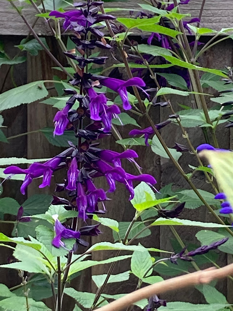 This was my first salvia. I acquired it as a cutting taken from a plant belonging to one of the members of our local gardening club and I managed to root it. For someone who up to that point had not always had much success in rooting things, this plant is indeed special. It is an unruly bush is beside a path and is now held from flopping completely across it by a semicircular support. It has survived both the "Beast from the East" and this summer's intense heat and drought. Brushing past it as I head down the garden releases the gorgeous aroma of the leaves. Its offsprings are happily rooting away in the greenhouse.
